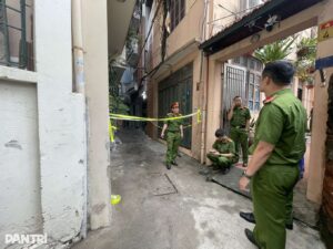 Ngay khi tiếp cận hiện trường, ngọn lửa đã bao trùm toàn bộ ngôi nhà cao 4 tầng và 1 tầng tum. Ngôi nhà có mặt tiền nhỏ hẹp, diện tích khoảng 25m2 và nằm trong ngõ sâu, cách đường giao thông chính khoảng 300m.